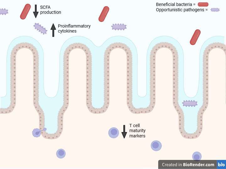 Some experts speculate that the aggressive induction pro-inflammatory cytokine signalling may potentiate the depletion of beneficial immunomodulatory bacteria – creating a feedback loop that sustains the pro-inflammatory environment. As bacterial metabolites – such as short-chain fatty acids (SCFAs) – are known to enhance the expansion and maturation of the immune system’s T cells, it is possible that this molecular crosstalk perpetuates immune dysregulation and contributes to the T cell dysfunction also observed in PASC patients8.